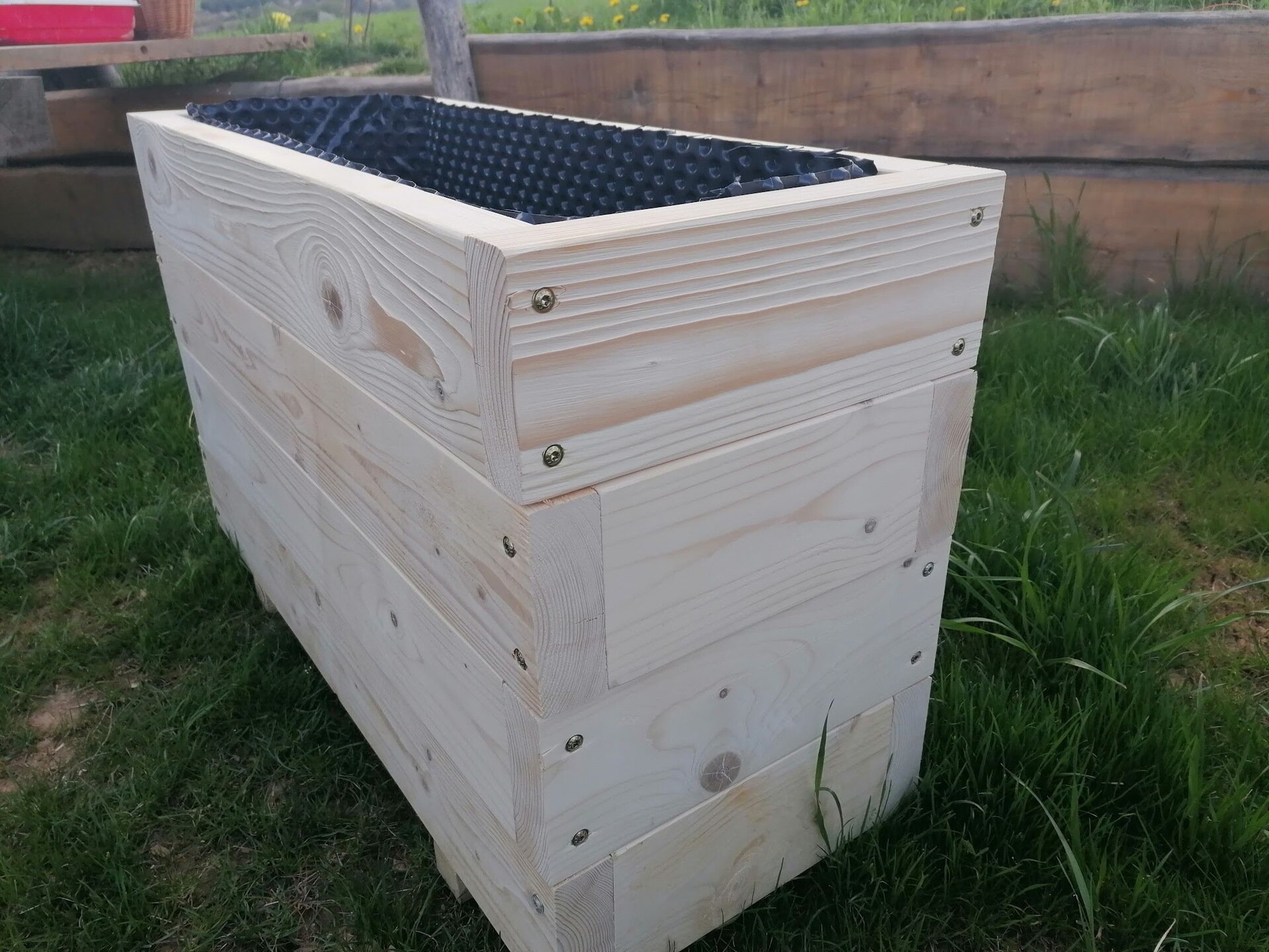 Vyvýšený záhon z dreva, rozmer 120 x 60 x 60 cm pre pestovanie zeleniny, kvetov, alebo ako vizuálna bariéra s výsadbou na terasu domu, reštaurácie, kaviarne.