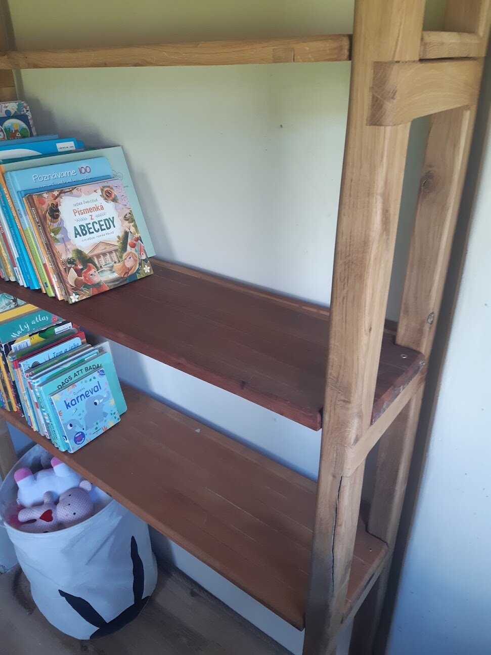 Drevený regál do detskej izby, poličky na knihy